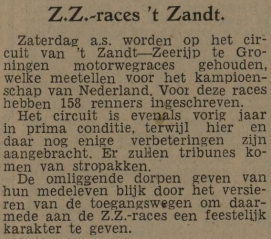 In het blad "De Motorwereld" van 19 Juli 1946 wordt het ZZ circuit aan het motorminnend publiek voorgesteld, de Groningers hadden duidelijk aan de weg getimmerd.